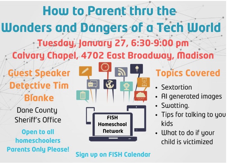 Families In School at Home or FISH Home Education Network is a Christian network of homeschooling families from the Madison, Wisconsin area, including many surrounding communities. We offer fellowship, mentoring and a variety of clubs and activities to our members. Welcome! We are glad you are here.