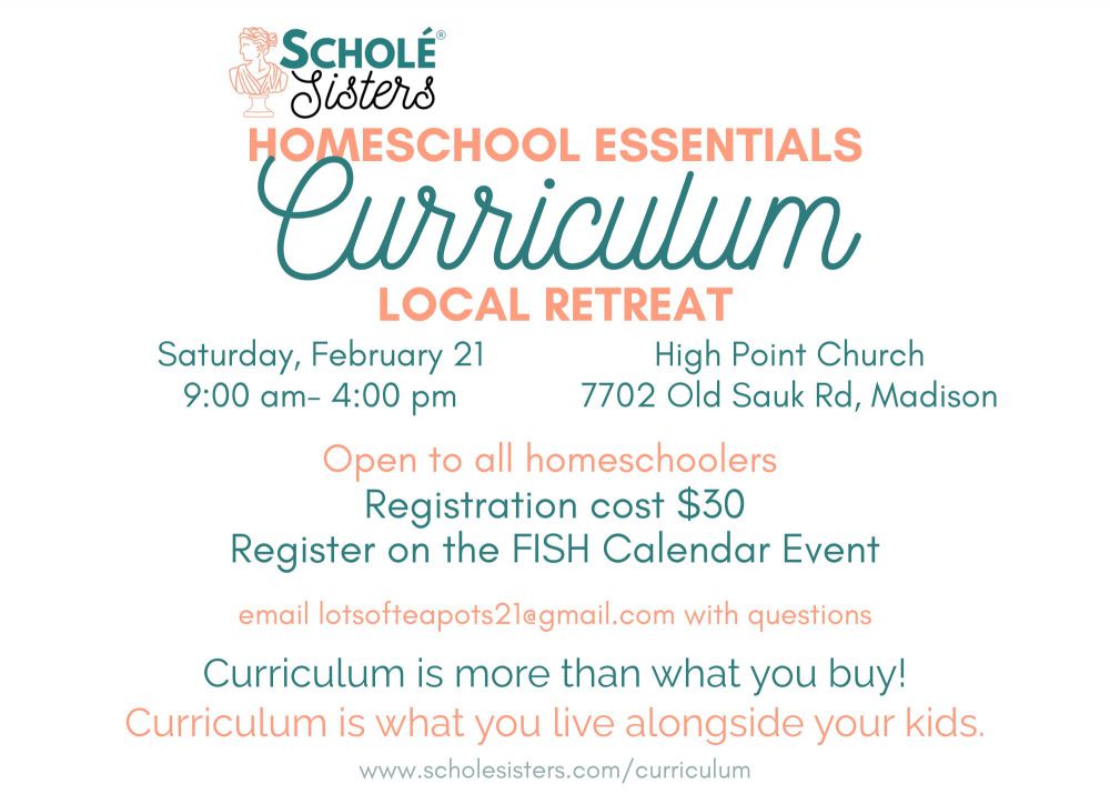 Registration is through this calendar event on the FISH website - deadline is February 13. Cost for the retreat is $30, and can be made through the FISH website, by Venmo, or by cash/check on the day of the event. Feel free to invite your non-FISH homeschool friends!