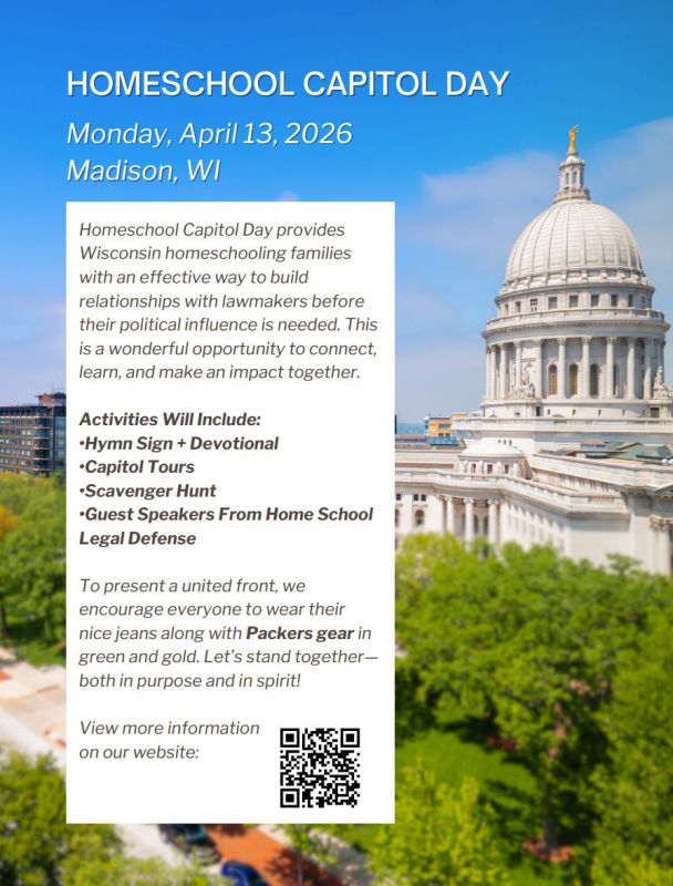 WHAT: Homeschool Capitol Days provides Wisconsin homeschooling families with an effective way to build relationships with lawmakers before their political influence is needed. It is a meaningful opportunity to connect, learn, and make an impact together.